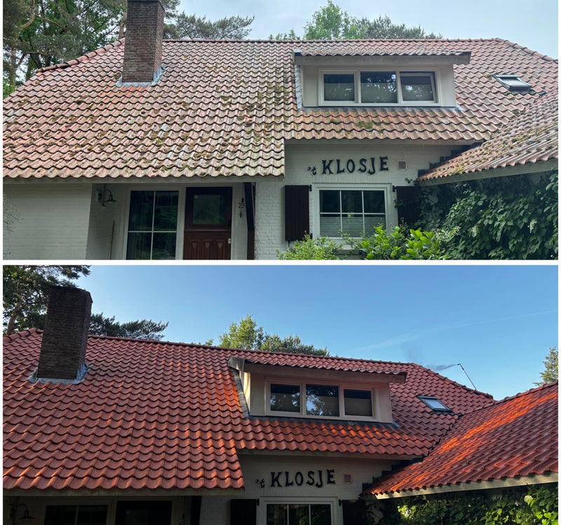 ✔ Mos, Algen & Korstmossen bij de Wortel Aanpakken – Onze reinigingsoplossing breekt organische groei af en voorkomt dat het terugkomt, zodat je dak jarenlang schoon blijft.
